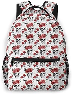 Sac à Dos Femme Homme College Scolaire Sac Sac à Dos Crâne Roses Rouges Bourgeons Gothique, Sac École Fille Garçon Cartable Collège Sac D'école