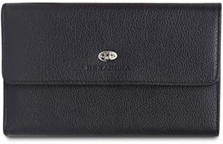 Laurent - Porte chéquier Talon Haut Compagnon de Voyage - Tout en Un - 12 emplacements Carte Bleu, Monnaies, Billet - 20 X 11,5 x 2,5 cm - Cuir Vachette (Noir 4 Volets)
