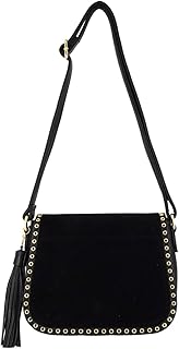 Sac à Main Bandoulière Femme Cuir PU Daim Suède - Besace Porté Epaule Clous Petit Sac à Main - Pochette Soirée Fourre-Tout Clouté Pompon Franges - Messenger Mode Chic Tendance - Noir