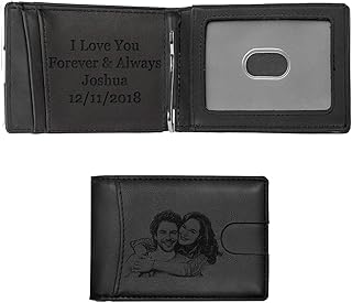 Portefeuille Personnalisé Photo,Portefeuille Homme Cuir,Petit Portefeuille Minimaliste, Alskafashion Portefeuille Gravé (Croquis Gris)