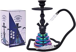 CHAMP Al Malik - Belle Chicha Fès en Aluminium – Narguilé - Hookah – Couleurs Arc en Ciel 35 cm - Vase en Verre - Livrée avec Foyer en céramique, Un Tuyau Plastique et Pince