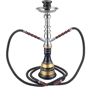 CHAMP - Belle Chicha 2 Tuyaux - Narguilé - Hookah - 45cm - Disponible en Rouge, Noir, Bleu, Violet - INOX et Verre - Livrée avec Foyer en céramique, 2 tuyaux Plastique et Pince - métal - Bleu